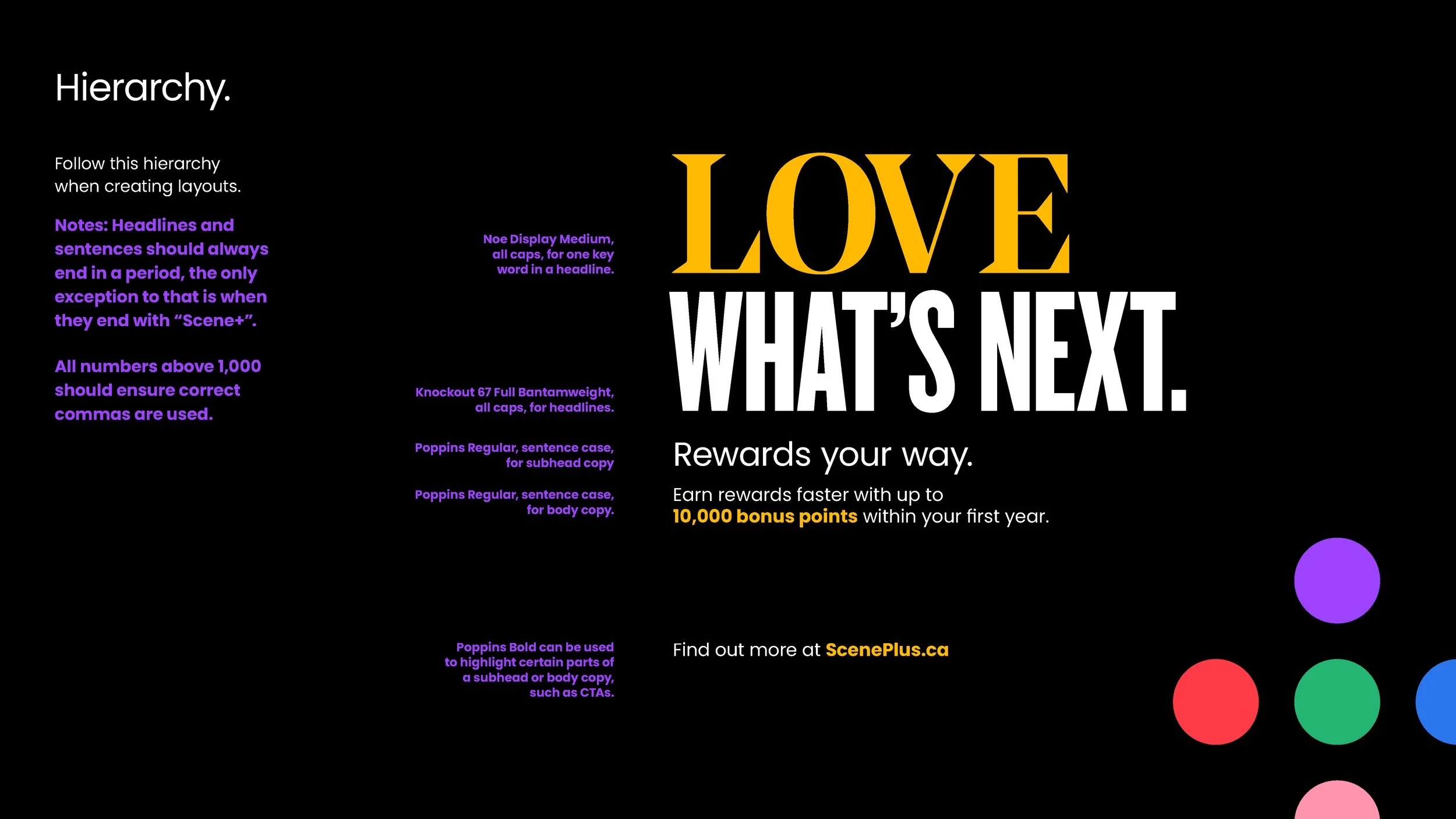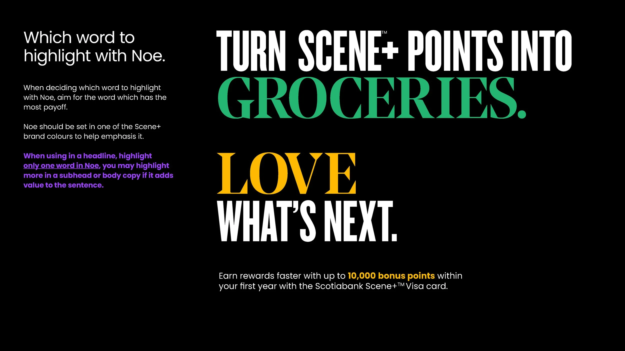 Collaborating with Lighthouse in Toronto (Scotiabank's in-house agency), Scene LP, Bensimon Byrne, and Rethink, I played a pivotal role in the creative evolution of the new program since early 2021. Taking charge of producing and supervising initiatives across various communication channels through Scene LP and Scotiabank I was instrumental in the Canada-wide launch, and was also the lead in developing robust brand guidelines for Lighthouse designers, creative partners, and third-party vendors.