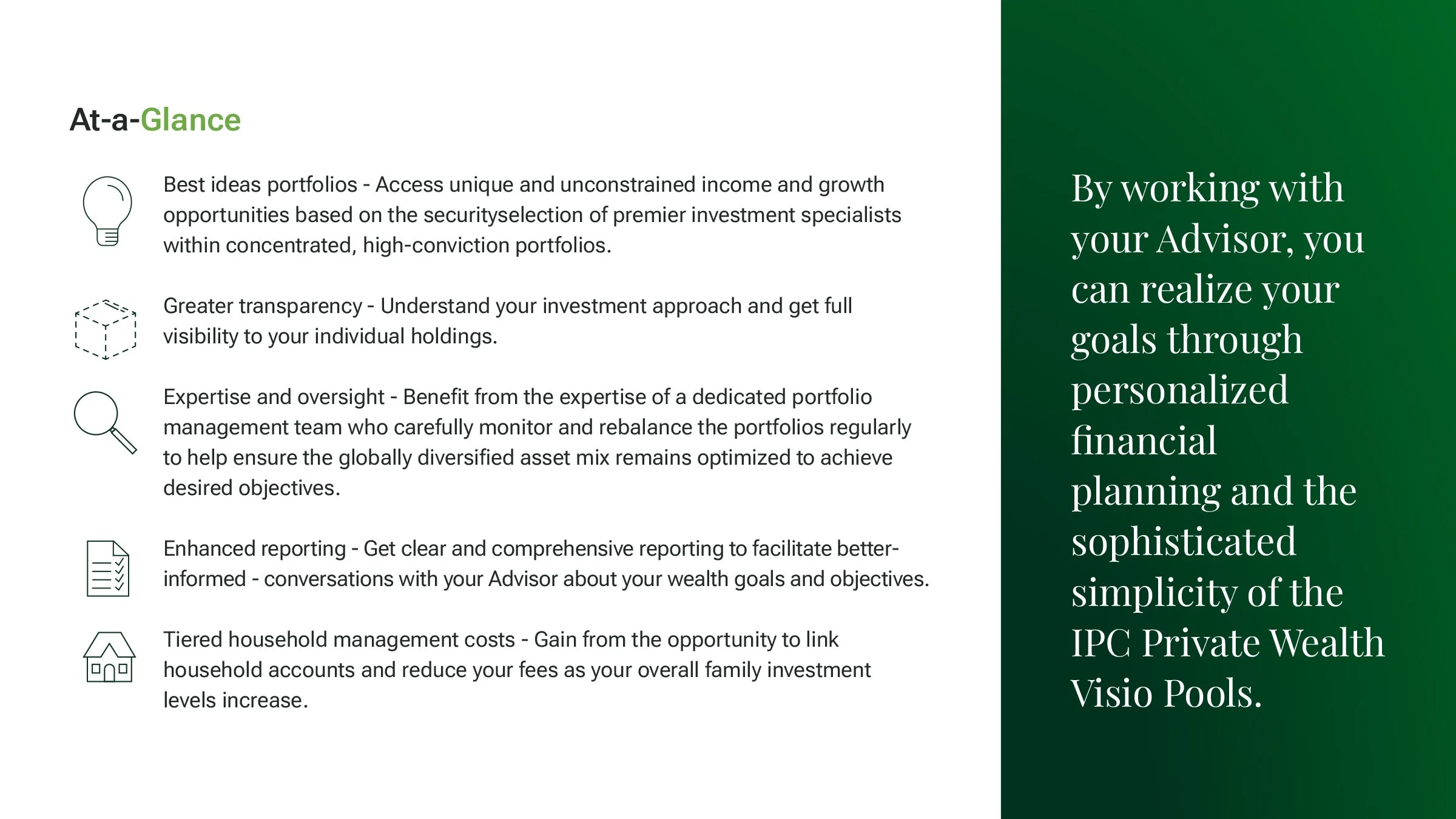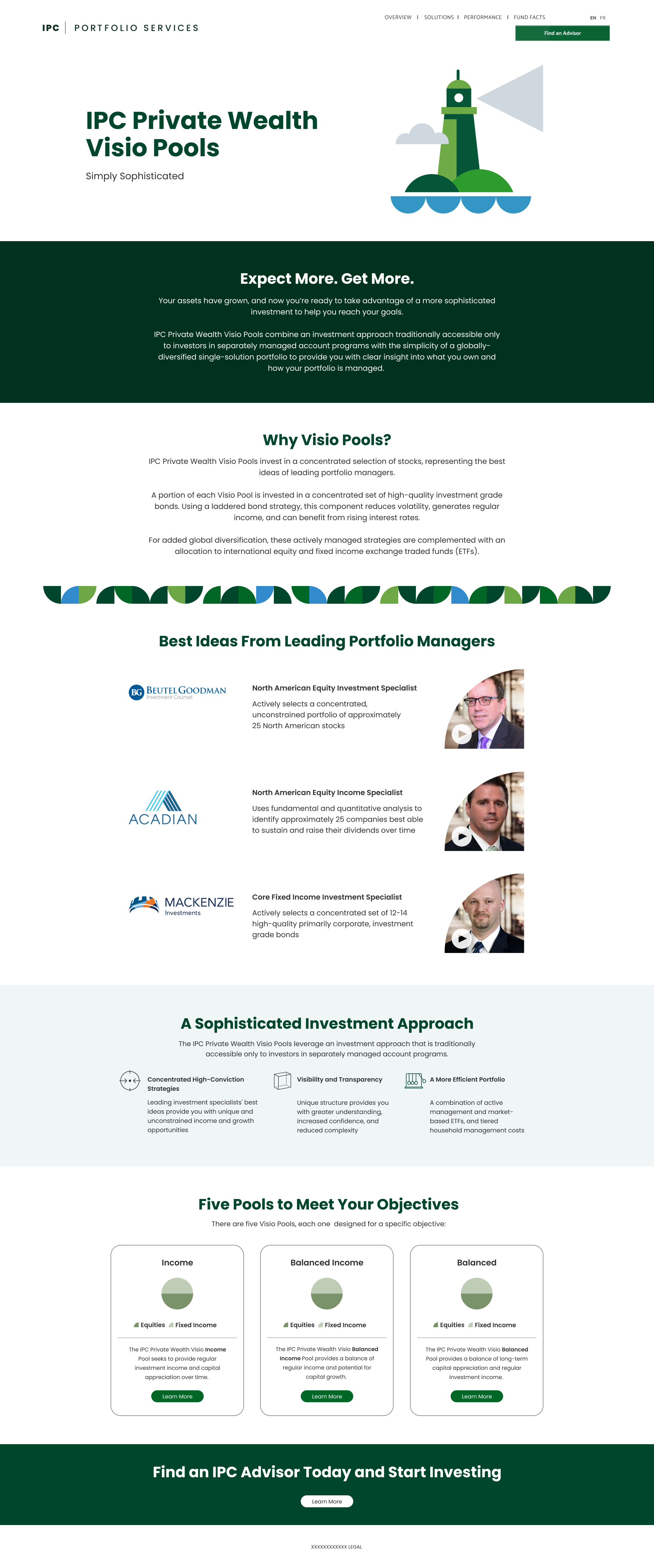 IPC was managing 4 brands with logos, wordmarks, visual language, photography style, and tone that appeared across various digital platforms and advisor resources (websites, intranet, newsletters, PPTs, PDFs, etc.) This created confusion for advisors in the marketplace. A decision was made to create a more streamlined brand universe which allows IPC to focus on high impact, innovative activities to build the business.
